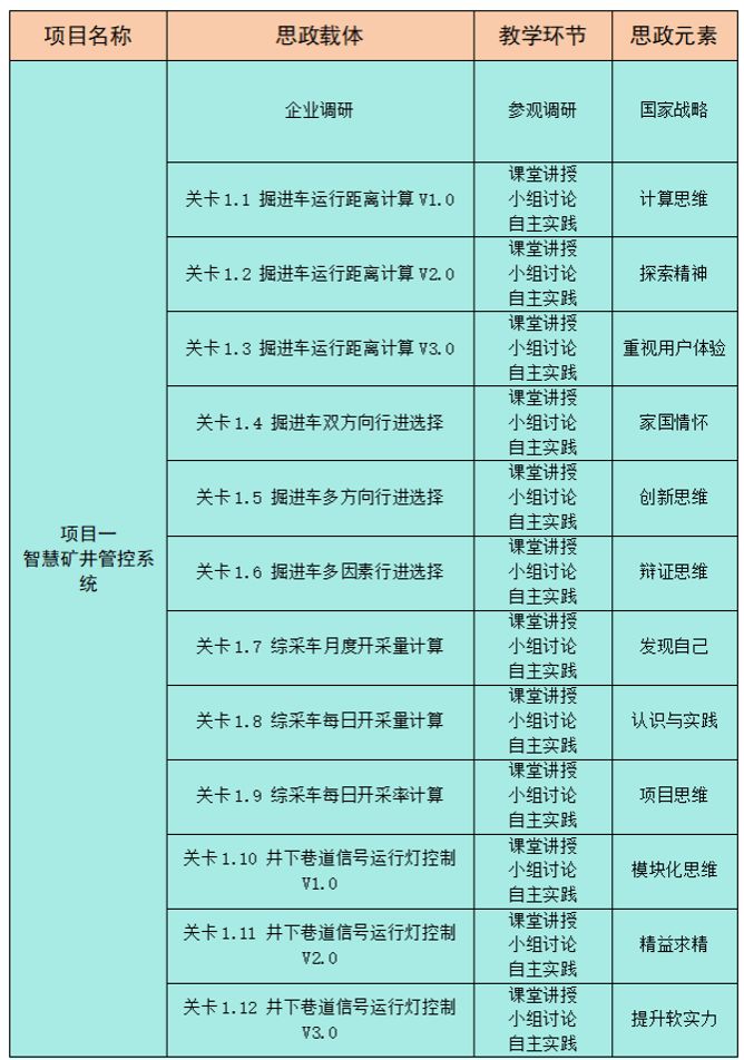 本課程設(shè)計(jì)緊密契合鄂爾多斯地區(qū)支柱產(chǎn)業(yè),基于真實(shí)完整的產(chǎn)業(yè)項(xiàng)目開(kāi)展項(xiàng)目式教學(xué),施行建立任務(wù)鏈條的項(xiàng)目關(guān)卡式教學(xué),使工匠精神、職業(yè)素養(yǎng)等思政元素在項(xiàng)目實(shí)踐中轉(zhuǎn)化為學(xué)生可感知的真實(shí)體驗(yàn),有效解決傳統(tǒng)編程課程中思政教育表面化問(wèn)題,為地區(qū)產(chǎn)業(yè)培養(yǎng)兼具技術(shù)能力與職業(yè)素養(yǎng)的應(yīng)用型人才提供了有效途徑。