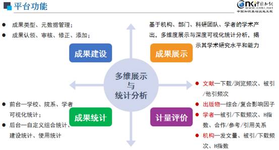 學術成果庫的建設實現了鄂爾多斯應用技術學院教師學者的歷年研究成果數據智能化匯總,包括成果總量、成果類型、被引頻次、參考指數、研究軌跡、基金成果、學術圈合作情況等,學校教師學者可以通過學術成果庫個人空間維護和認領本人學術成果,方便教師進行科研數據跟蹤維護,同時為科研管理和教師學者辦理校內業務提供數據參考。