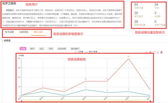 目前,機構知識庫已匯集包括期刊論文、會議論文、專利、科技成果、圖書著作等在內的資源成果1119件,其中937篇全文。平臺展示了502位學者的學術信息,還提供各系部科研成果展示、統計分析與計量評價等相關指標。