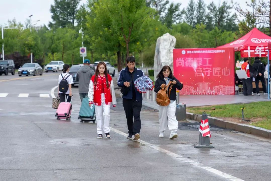 學校特別開啟的"溫情通道",讓送學車輛有序駛入校園。這是鄂應院為2025級新生送上的第一份"回家禮"。即停即走不淋雨,入校即享家溫暖。