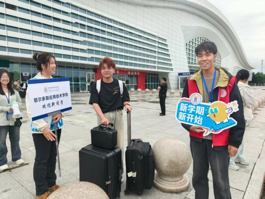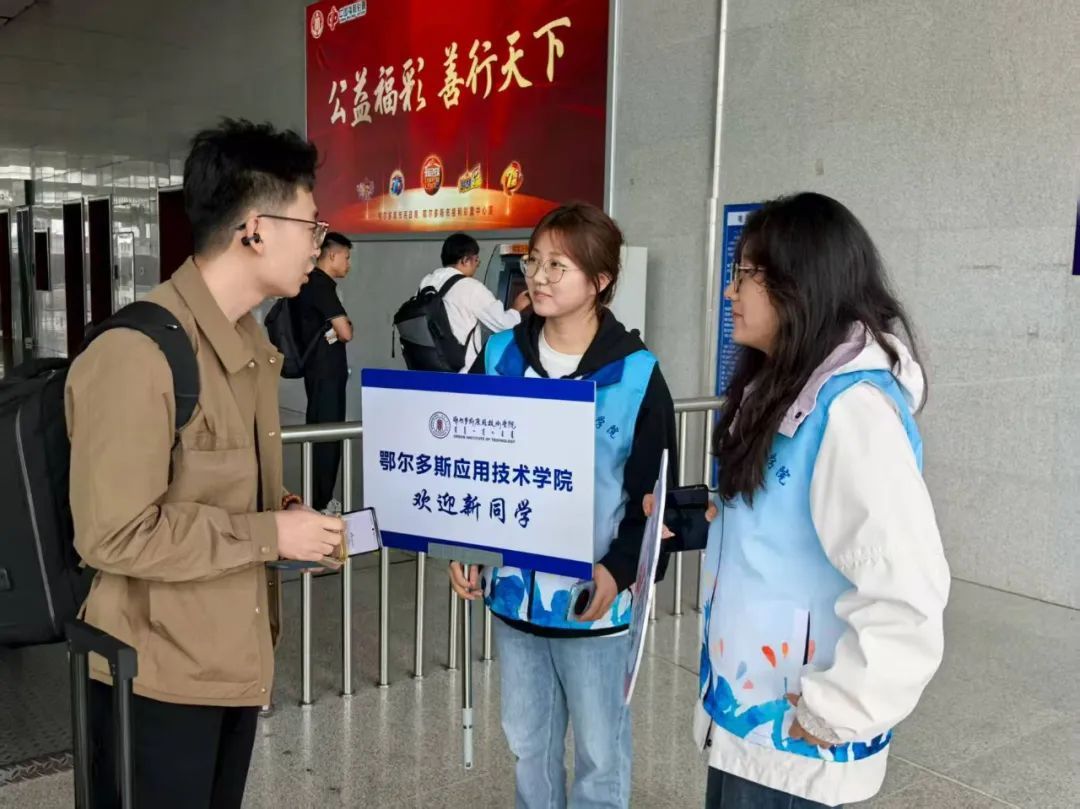 在鄂爾多斯市各火車站出口,身著藍色馬甲的鄂小鷹志愿者早已等候多時。他們手舉醒目的接站牌,熱情地接過新生手中的行李,用貼心的指引和溫暖的笑容,溫暖學弟學妹入校的“第一公里”。