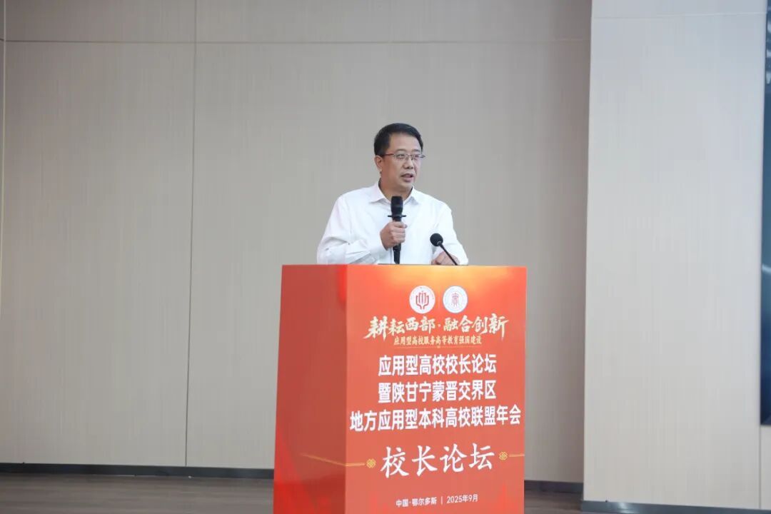 學校黨委副書記、校長宮箭以《涵養地方特色培育應用英才——譜寫應用型大學建設的鄂爾多斯篇章》為題作報告,圍繞黨建領航、產教融合、科研創新與應用型特色等,系統介紹了我校的發展歷程與辦學成就。北方工業大學黨委副書記、校長張立峰,東莞理工學院黨委副書記李忠紅,陜西理工大學黨委副書記、校長王磊,榆林學院黨委副書記、校長康偉圍繞特色發展、產教融合及創新驅動等內容作主題報告。