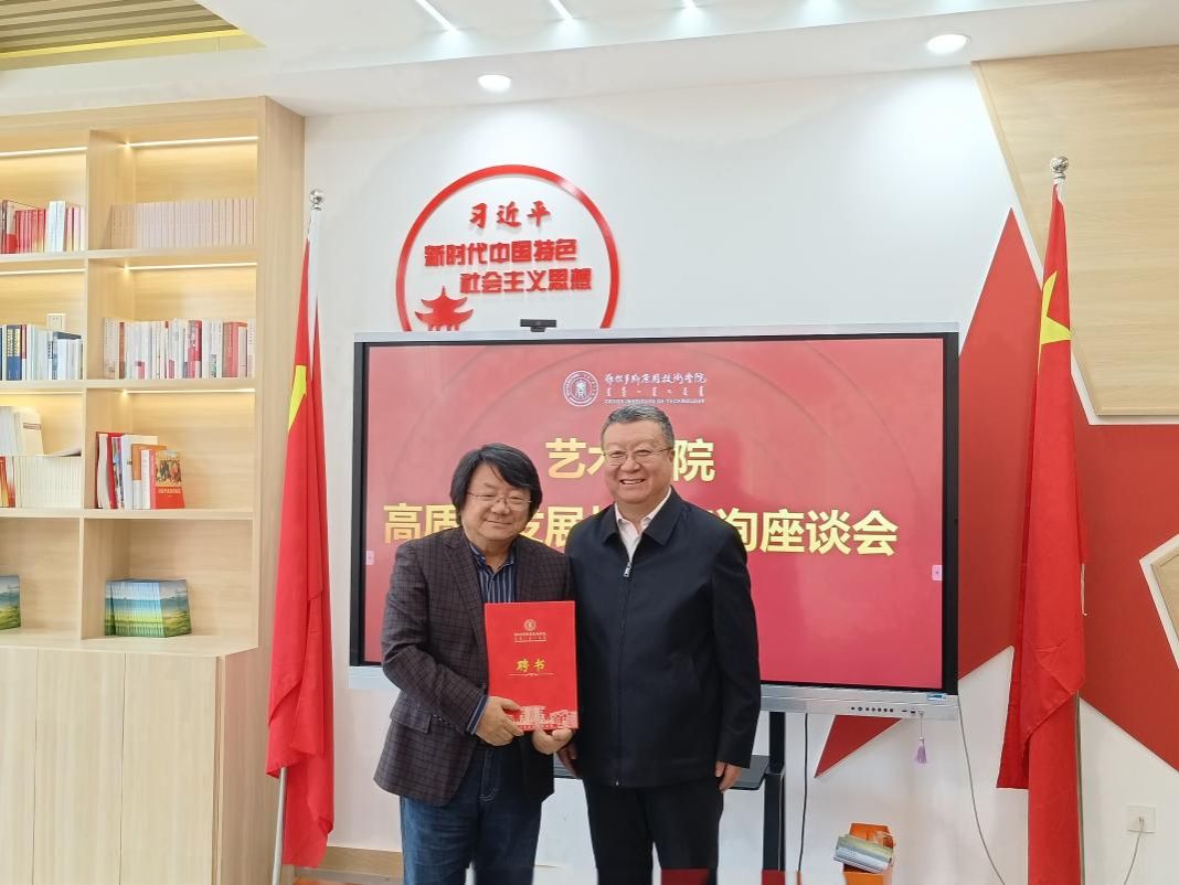 會上,李少東為楊民康教授頒發了“鄂爾多斯應用技術學院藝術學院學科專業建設學術顧問”聘書。藝術學院院長李紅梅教授聚焦學科建設、科學研究、師資隊伍建設、人才培養、產教融合與對外交流五大核心議題做了藝術學院發展現狀與未來學科發展路徑思考專題匯報。