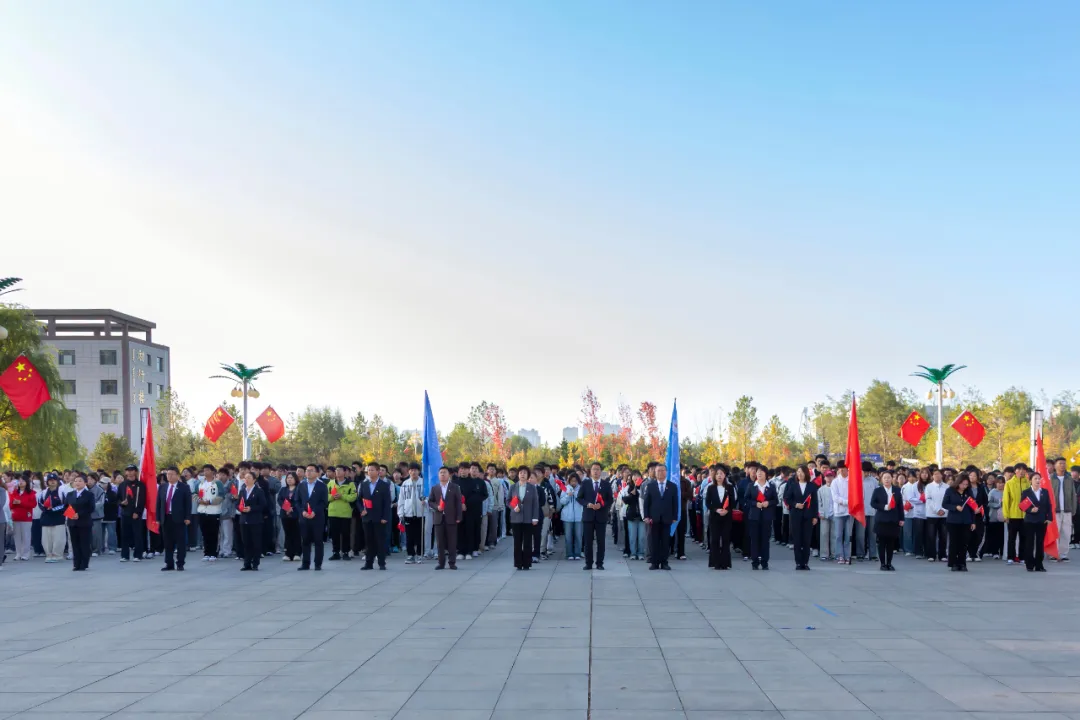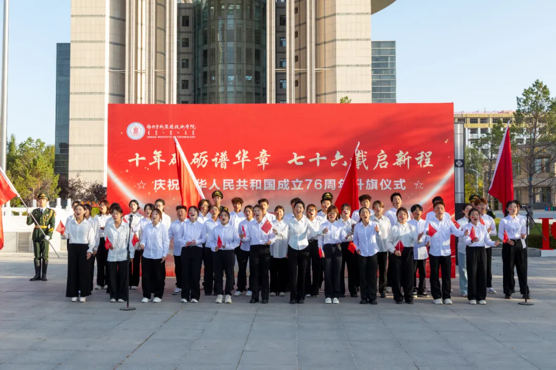 9月30日清晨,學(xué)校在康巴什校區(qū)、東勝校區(qū)舉行“十年砥礪譜華章 七十六載啟新程”主題升旗儀式,共同慶祝中華人民共和國成立76周年。學(xué)校黨委副書記、校長宮箭,黨委委員、紀(jì)委書記、監(jiān)察專員李少東,黨委委員、副校長金良,劉建出席儀式,各相關(guān)職能部門負(fù)責(zé)人,各學(xué)院黨總支負(fù)責(zé)人、團(tuán)總支書記、輔導(dǎo)員與師生代表參加儀式。