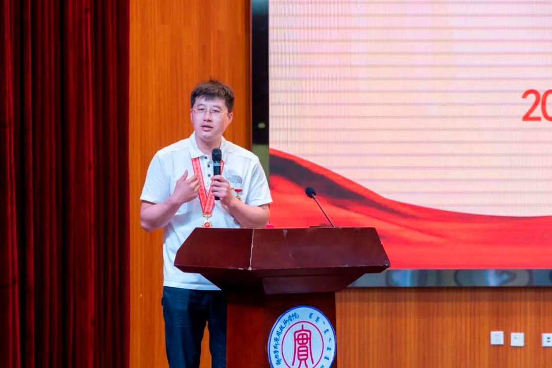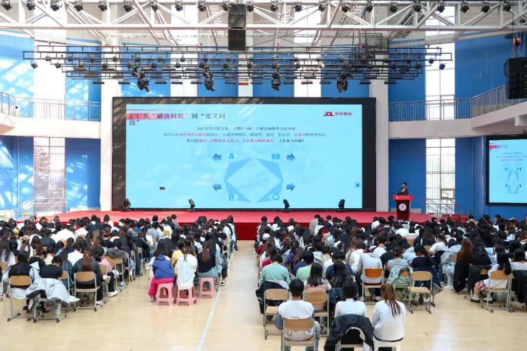 在東勝校區(qū),京東集團(tuán)年輕的管理骨干張子奇則帶來了以“校園到未來:構(gòu)建你的核心競(jìng)爭(zhēng)力與無限可能”為主題的分享。他提出大學(xué)是人生重要"投資期",要投資認(rèn)知邊界、錘煉硬核能力、充盈情感賬戶。他建議學(xué)子建立T型知識(shí)結(jié)構(gòu),培養(yǎng)心理資本,并做到吃苦耐勞、勤于思考、勇于挑戰(zhàn)、鍛煉溝通。結(jié)合自己從技術(shù)到管理的成長(zhǎng)路徑及榮獲"全國(guó)交通運(yùn)輸部抗擊新冠疫情先進(jìn)個(gè)人"等榮譽(yù)的經(jīng)歷,他勉勵(lì)同學(xué)們積極參與實(shí)踐,勇于創(chuàng)新,以自信姿態(tài)迎接未來無限可能。