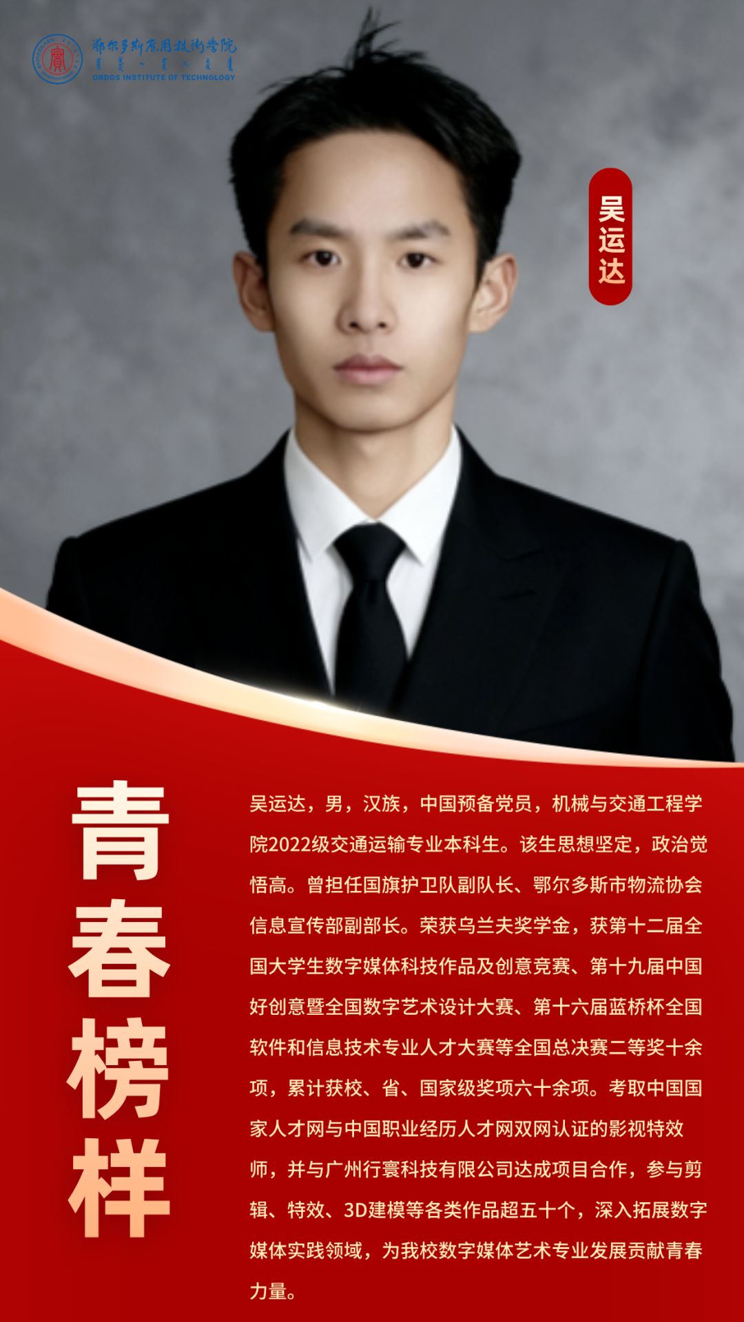 此次選拔賽不僅為優秀學子搭建了展示自我、交流成長的平臺,更以榜樣為鏡、以典型為尺,進一步濃厚了學校資助育人氛圍,為營造積極向上的校園學風、培育優良育人環境注入了新動能。希望青春榜樣在未來征程中再展風采,更期待廣大學子能從其感召中汲取力量,書寫各自青春的璀璨華章。
